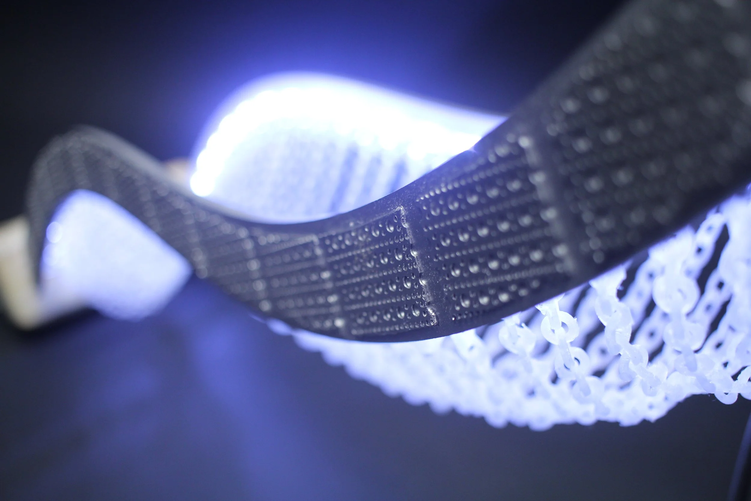 A series of 36* 3D printed chains fastened to a laser and plasma cut frame.